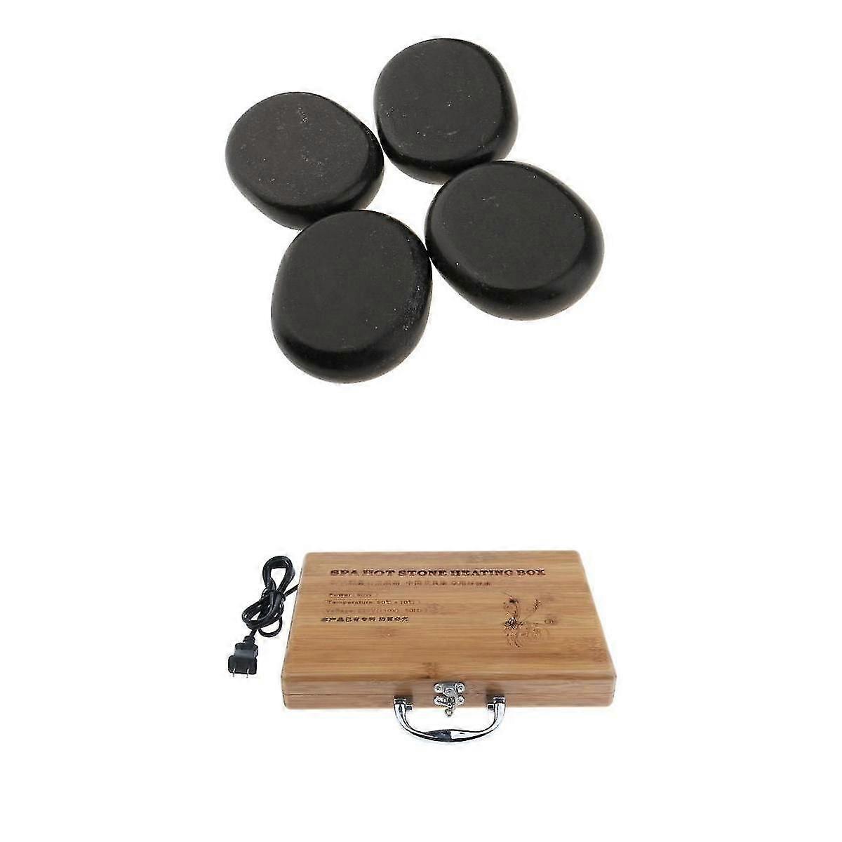 Hot Stone Massage Heater Warmer Box Case + 4 PCS Massage Stones for Spa