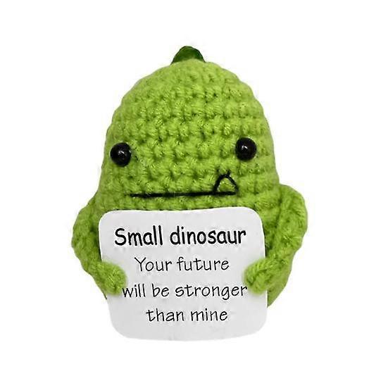 Positive Crocheted Dinosaur with Encouraging Card Emotional Support Handmade Knitting Dino Doll Toy Decoration Kids Adults Christmas Gift
