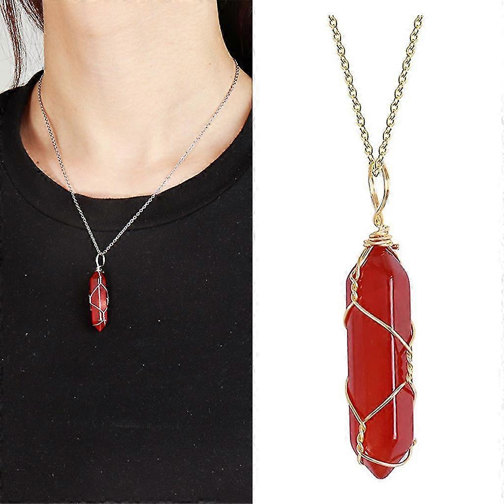 Positive Crystal Red Agate Necklace Gemstone Pendant Spiral Wire Wrapped Decor