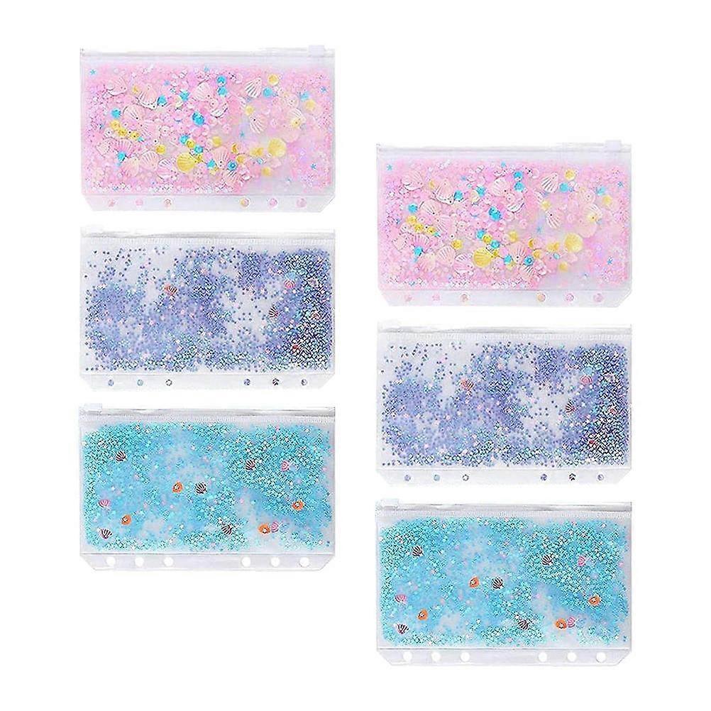 Binder Storage Pouch A6 Notepad Binder Pockets File Organization Office Blue Rectangular 6Pcs