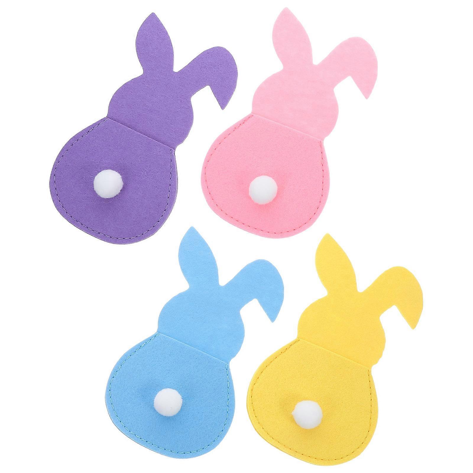 Easter Bunny Cutlery Holder Felt Pouch for 4Pcs Adorable Rabbit Shaped Bag