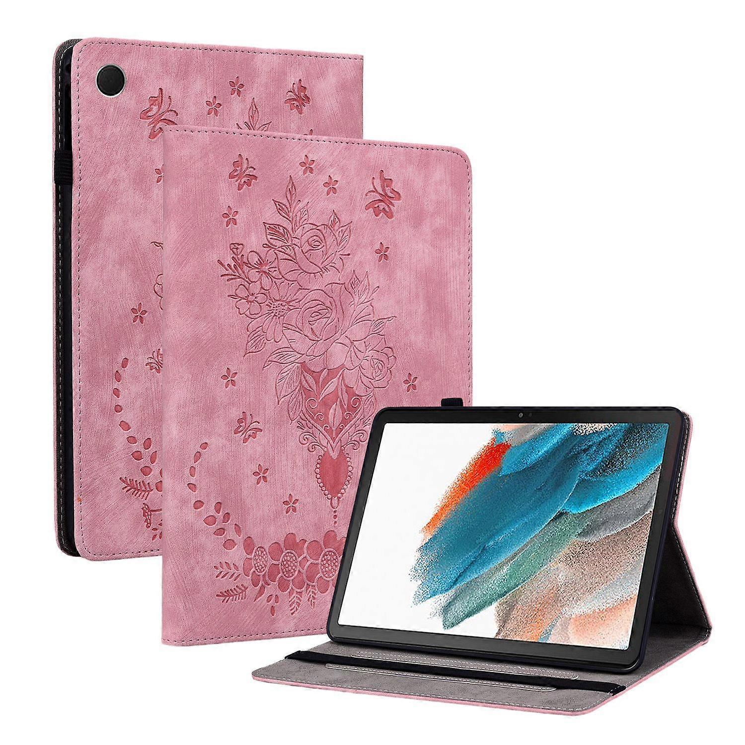 For Samsung Galaxy Tab A11+/A11 Plus Case Card Holder Anti-Scratch Leather Cover Rose Flower Imprint