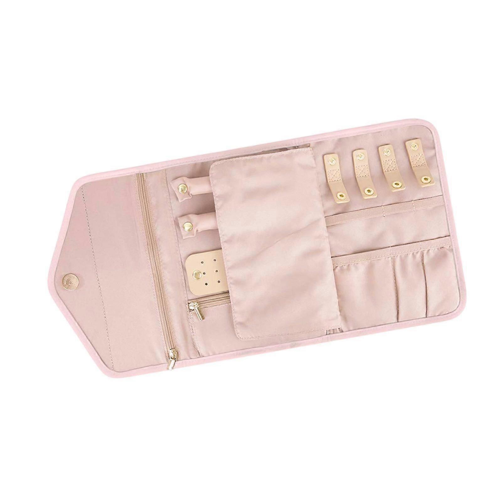 Jewelry Organizer Case Soft Ear Studs Rings Portable Travel Jewelry Roll Bag pink