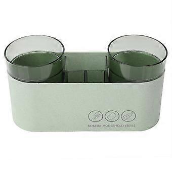 Toothbrush Holder Toothpaste Storage Rack Organizer with Cup Home Bathroom Accessories (Green)