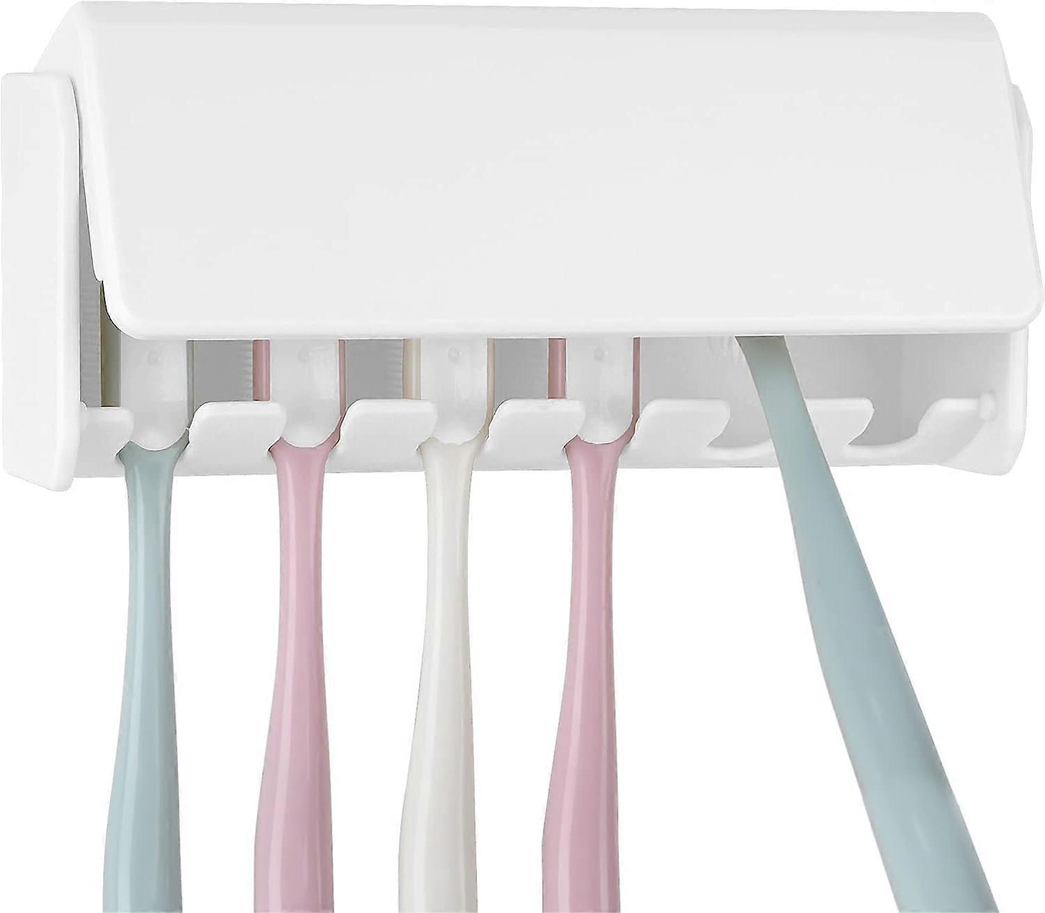 Toothbrush Holder Wall Mounted with Cover, 6 Slots Self Adhesive Toothbrush Organizer Hanger, Toothbrush Storage Rack for Bathroom, Shower, RV, Camper