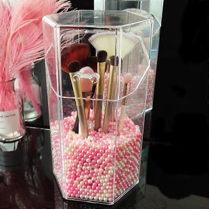 Makeup brush holder, hexagonal acrylic cosmetic brush holder with cover, cosmetic brush storage rack, makeup storage rack for bathroom and dressing ta