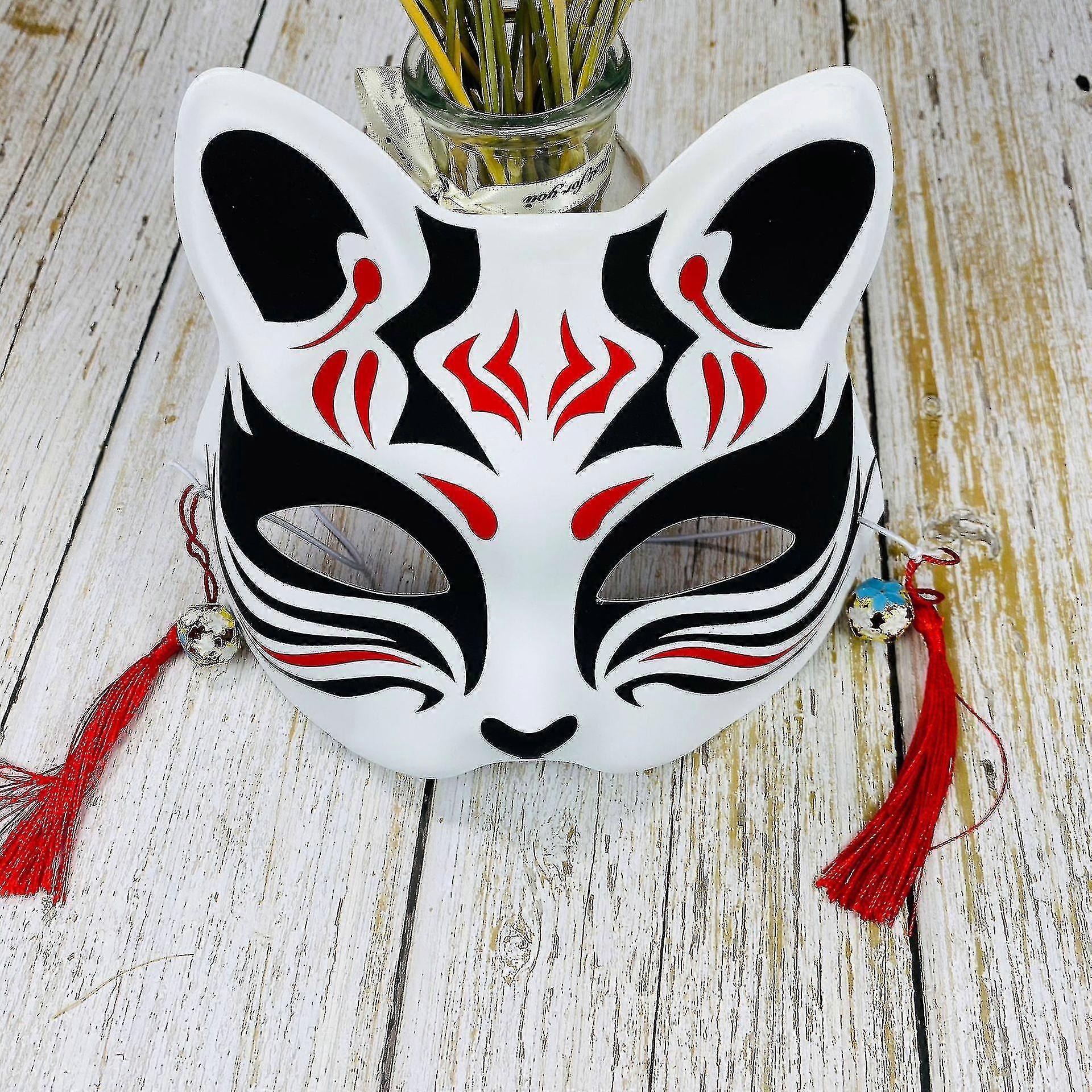 Japanese Mask Half Face Hand-painted Cat Fox Mask Anime Demon Slayer Masquerade Halloween Festival Cosplay Prop