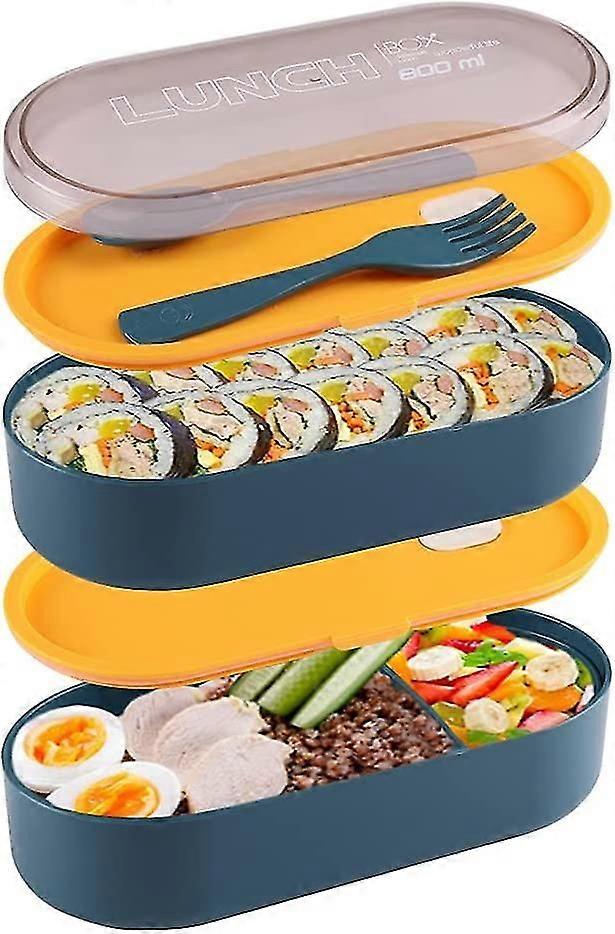 Japanese Bento Box Adult Lunch Box,stackable 2 Layer Bento Box With Sauce Container