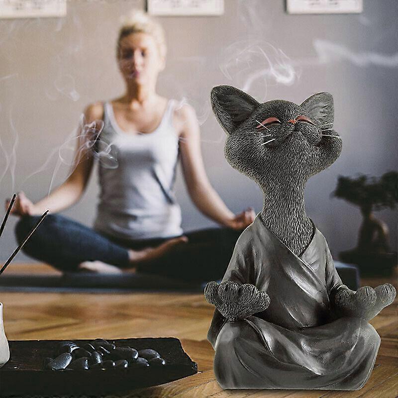 Whimsical Black Buddha Cat Figurine Collectible Happy Home Decoration Garden