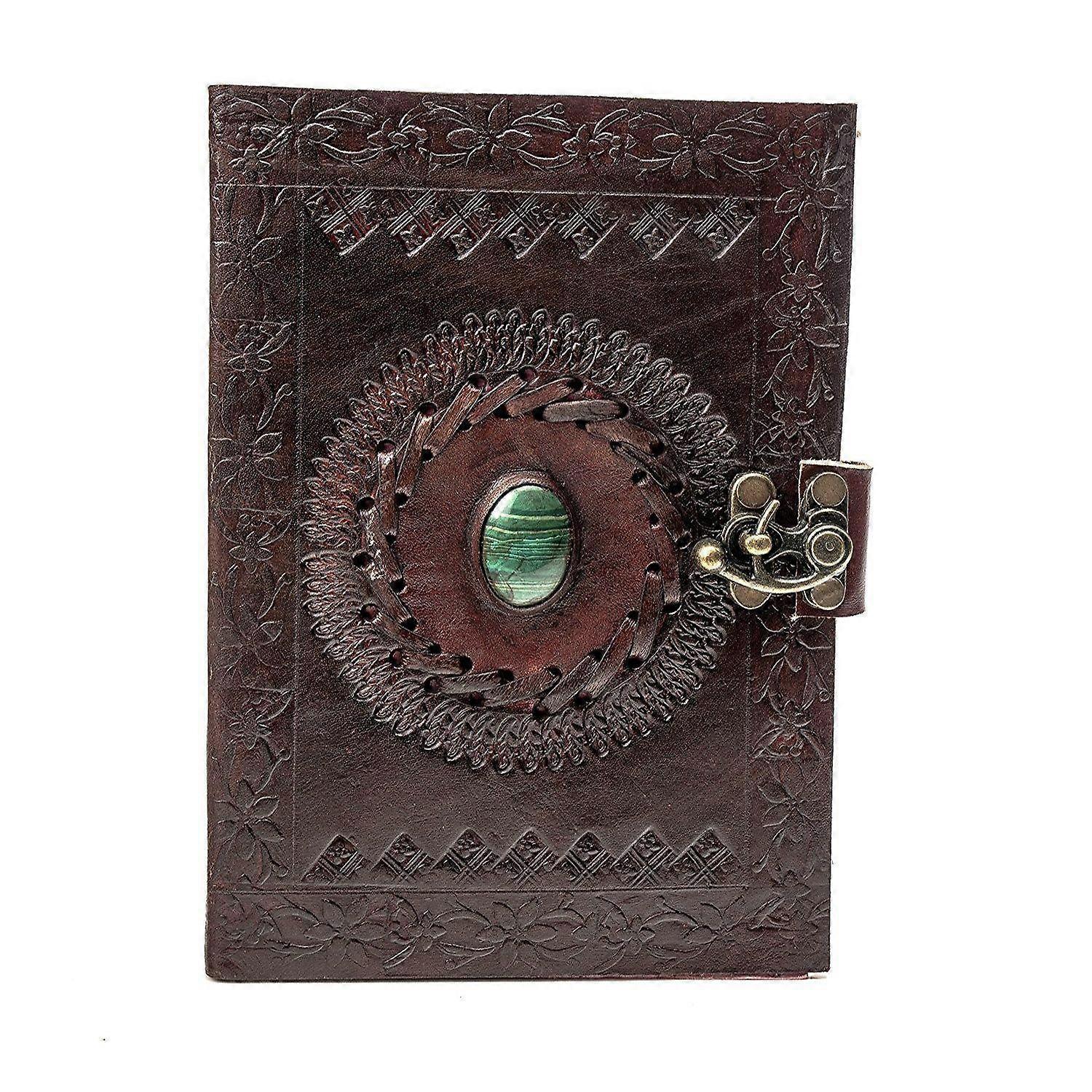 Indian Leather Arts Vintage Hunter Handmade Paper Notebook Diary Green Stone With Metal Lock