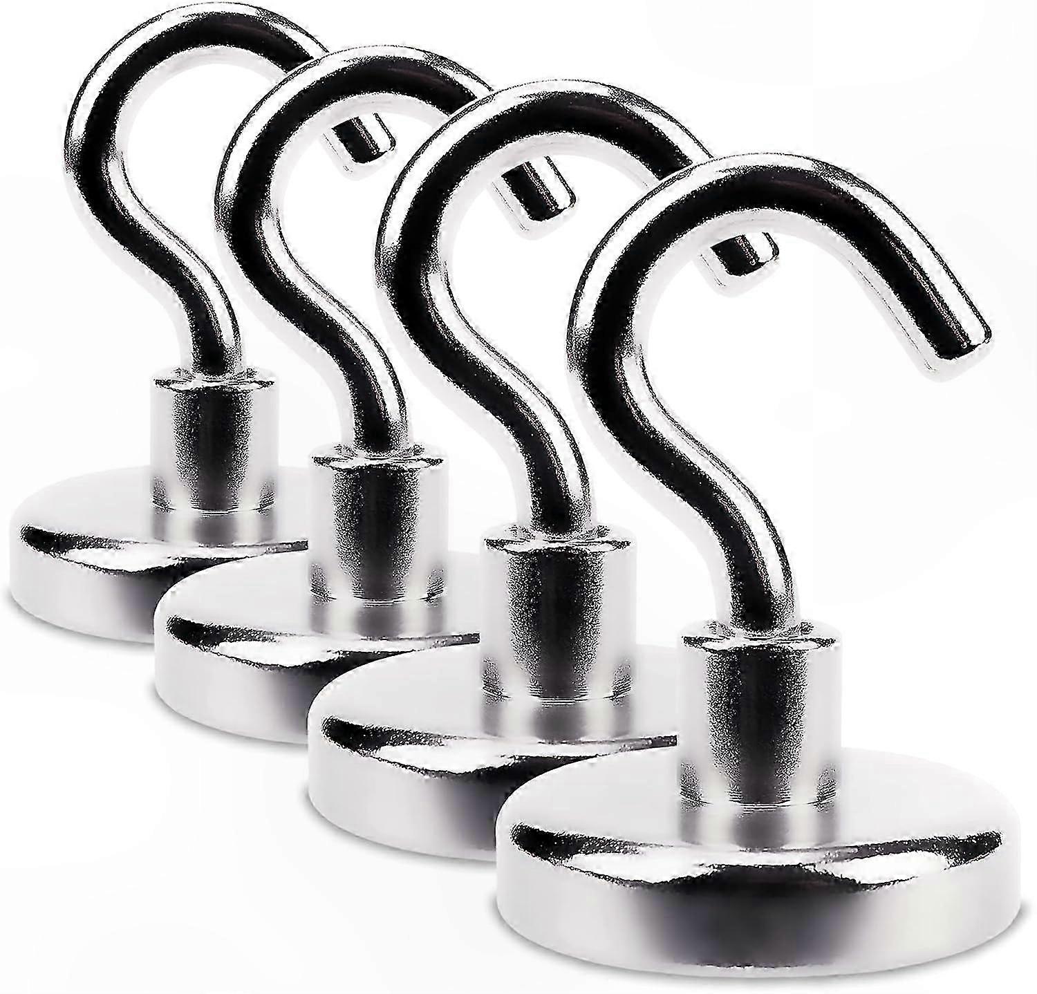 [Set of 4 Magnetic Hooks] 4 x Neodymium Magnet Hook, Very Strong in Steel Case, Dimensions 32x45 mm, Load Capacity 24 kg [Wide Use] Suitable for magnetic boards, refrigerators, as a hanger for small utensils, tools, keys, and organizer for wires and cables [Super Strong] Ideal for workshop and car, for DIY and home applications as a mounting element, magnetic hook [High Quality] Made of neodymium magnet (NdFeB) with high attraction strength; covered with an elegant anti-corrosion nickel-copper-nickel coating [Caution] Neodymium magnets attract iron and other ferromagnetic materials, including many metal alloys; they do not attract certain types of stainless steel, copper, or gold