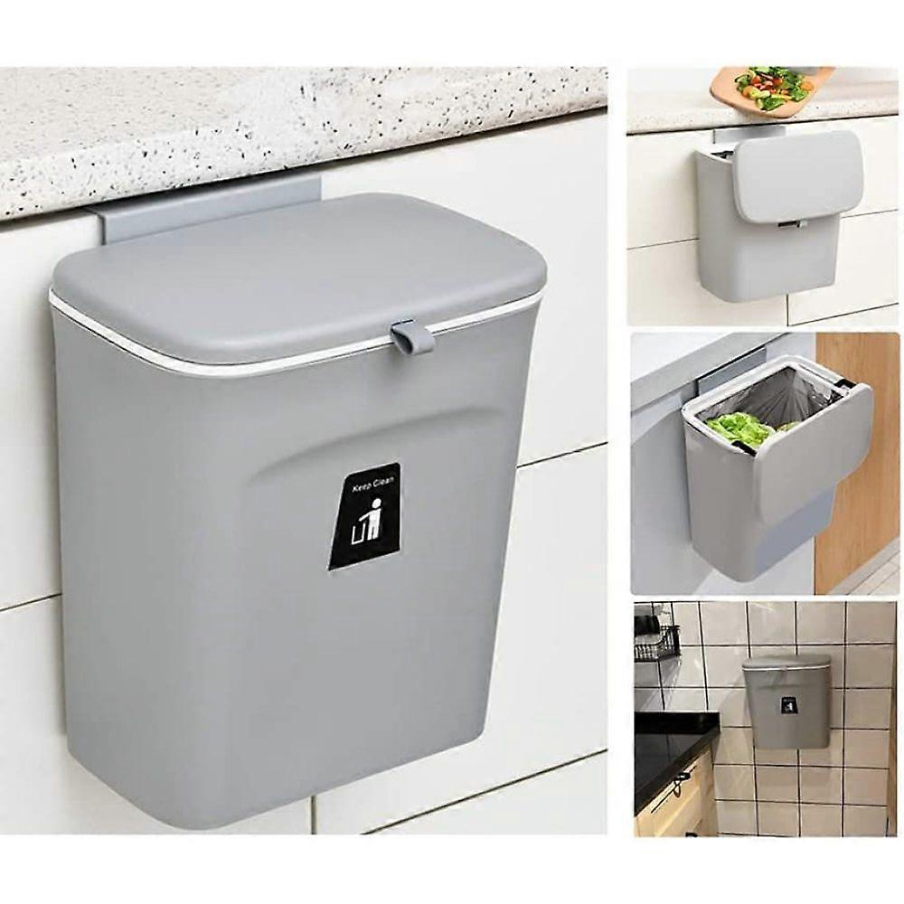 Kitchen Compost Bin, 9L Trash Bin, Countertop or Under Sink, Hanging Small Trash Bin with Lid for Bathroom/Bedroom, Indoor Compost Bin (Grey)
