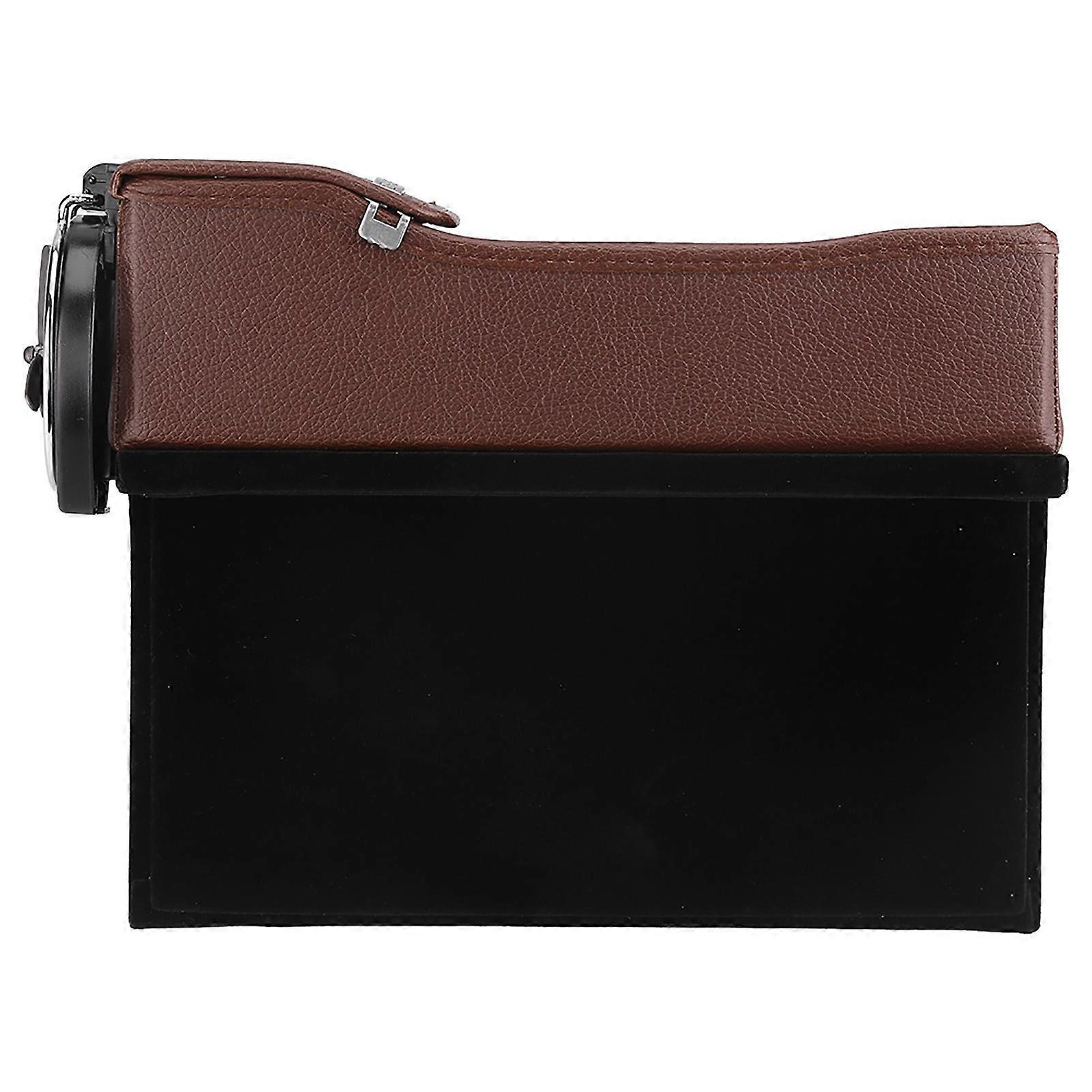 Car Seat Leather Storage Box Gap Catcher with Coin Organizer & Cup Holder Left Side Brown