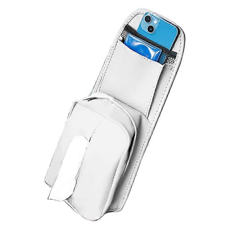 Car Seat Side Storage Bag Hanging Tissue Box PU Leather Phone Holder Organizer-White