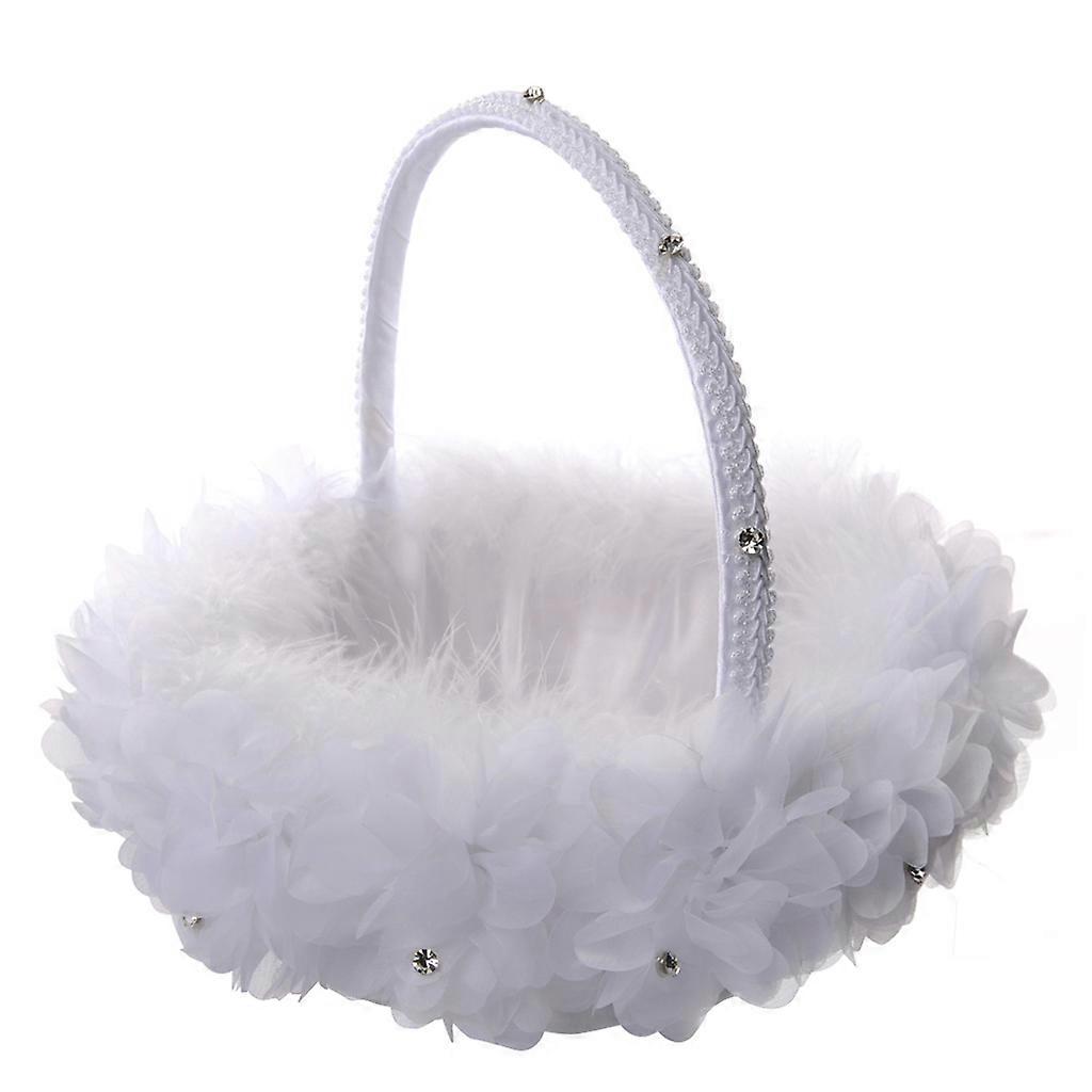 Flower Girl Baskets The Fabric Lace Decoration Cute Handle Flower Girl Basket White Flower Basket for Wedding Decoration White