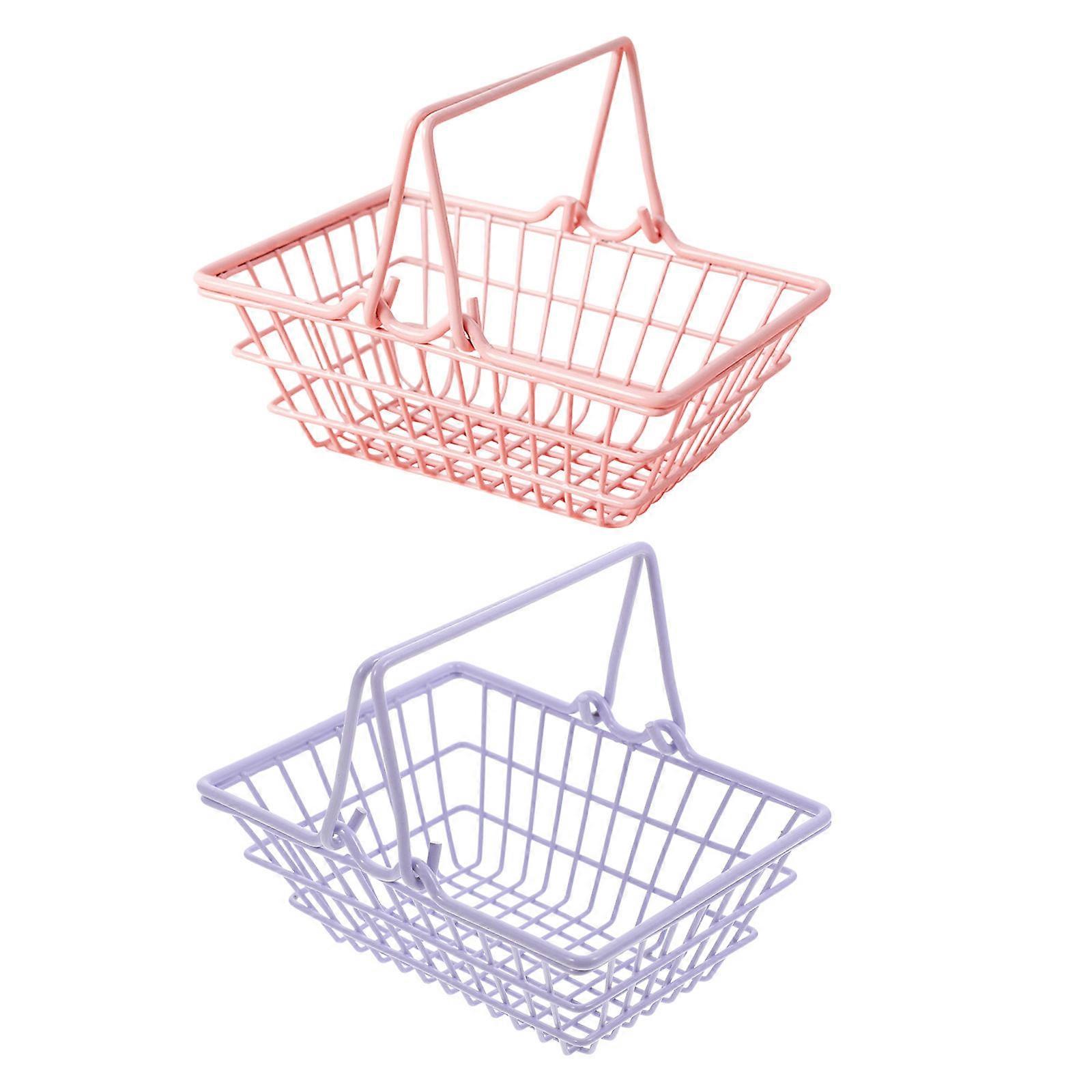 Shopping Basket Cute Tiny Mini Storage Basket for Toddlers Assorted Color Metal for Toys 2Pcs