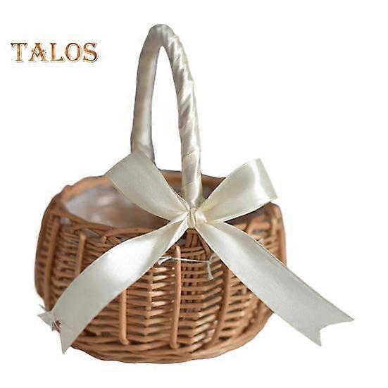 Wicker Rattan Storage Basket Hand Woven Flower Basket with Handle Portable Storage Basket Flower Girl Basket for Home Wedding Decor