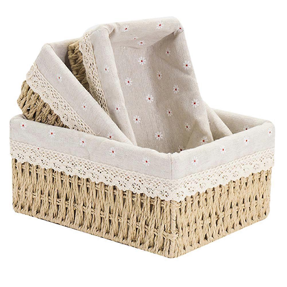 This item is a woven storage basket, which can hold books, sundries, fruits and various household items, such as cosmetics, keys, pencils, etc. Suitable for any living space, balcony, desktop, floor, corridor or shop, can meet any need. Features -Color:Multi -Material:Paper rope, cotton cloth, iron -Size:26.00X20.00X12.00cm/10.22X7.86X4.72in (L) -Size:22.00X16.00X11.00cm/8.65X6.29X4.32in ( ) -Size:18.00X12.00X10.00cm/7.07X4.72X3.93in (S) - Owning the and break resistance ability, very , the basket is practical and convenient to use. - The Storage Basket with liner is very practical whether used as a desktop basket or as a closet storage basket. - The Woven Storage Basket can easily help you store sundries and play a very good decorative effect. - It has a wide range of uses, not only a practical storage container, but also a home ornament. - Practical and Storage Basket, and can be used in the office, kitchen, bathroom, bedroom, etc. Package list: 1 × Large Size Storage Basket 1 × Medium Size Storage Basket 1 × Small Size Storage Basket