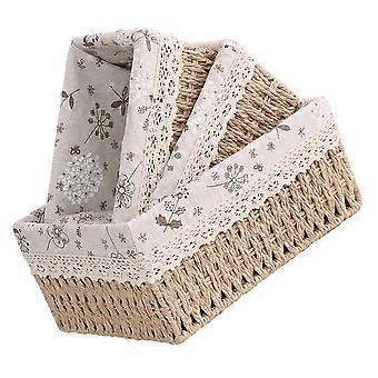 Storage Basket Rattan Woven for Storage 3Pcs Khaki Household Sundries
