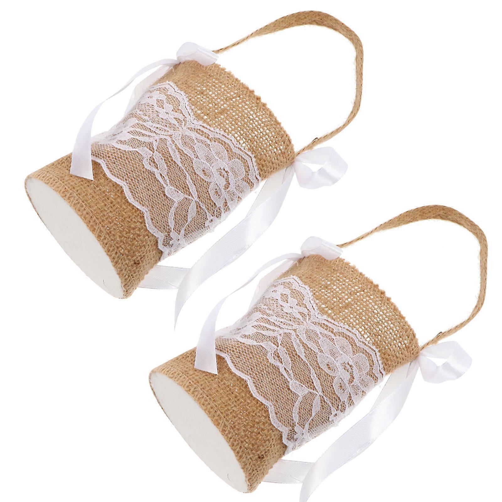 Photography Prop Wedding Basket for Storage 2Pcs Linen Bags