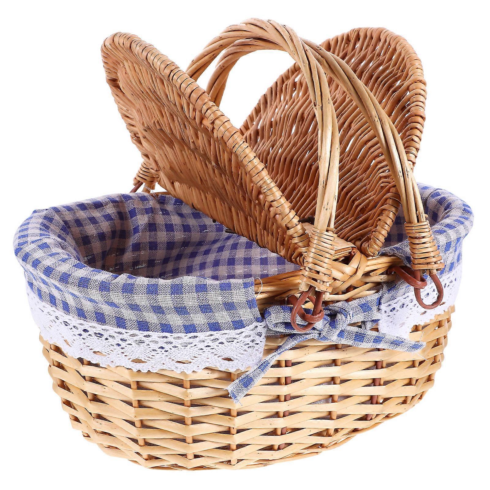 Picnic Basket With Lid Wicker Rectangular Harvest Basket Bathroom Bedroom 35.00X25.00X17.00CM Organizing 1Pcs