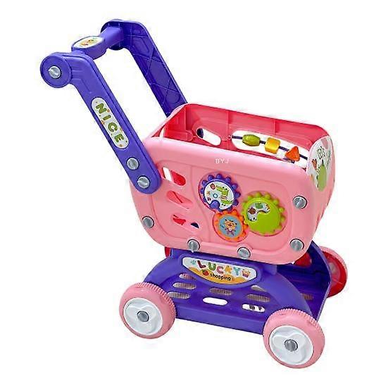 Introducing the shopping cart toys, a fun and educational toy for children. This innovative shopping cart features puzzle early education components on both sides, offering various engaging ways to play. The simulated wheels are designed with anti-slip texture, making it suitable for different terrains and easy for children to push around.