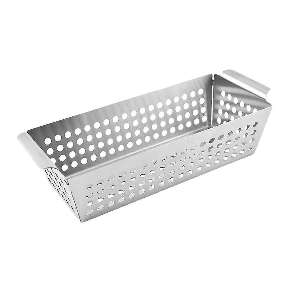 Stainless Steel Grill Basket with Double Handles BBQ Grill Basket for Outdoor Grill Stainless Steel BBQ Tray Double Handle Grill Pan Reusable BBQ Bask