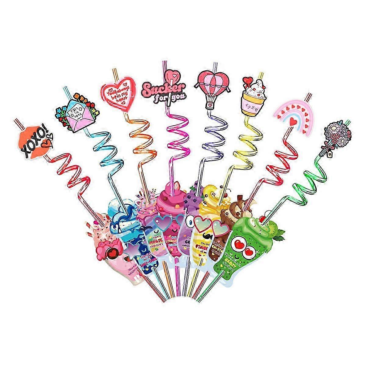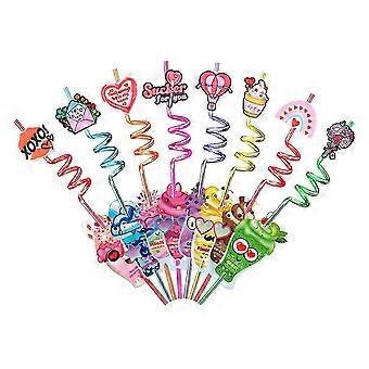 Straws for Children'S Valentine'S Cards, with Heart-Shaped Bags and Stickers, are Used for Classroom Exchange. - FFY