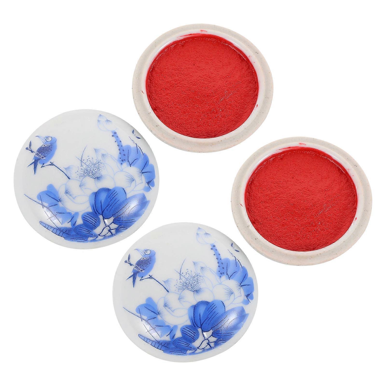 Calligraphy Red Inkpad Portable Square School Office Students 2Pcs