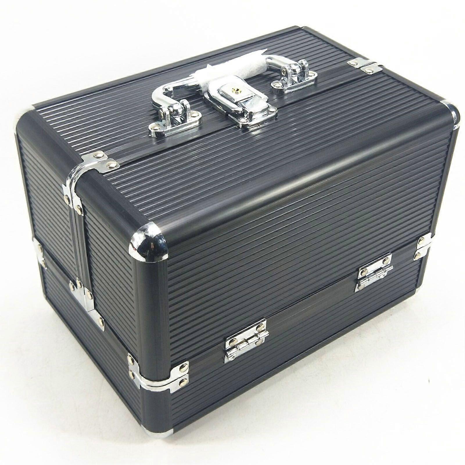 Makeup Case Cosmetics Carrying Box 25x17x17cm Large Capacity Storage for Home Salon Black Strip Black Bottom