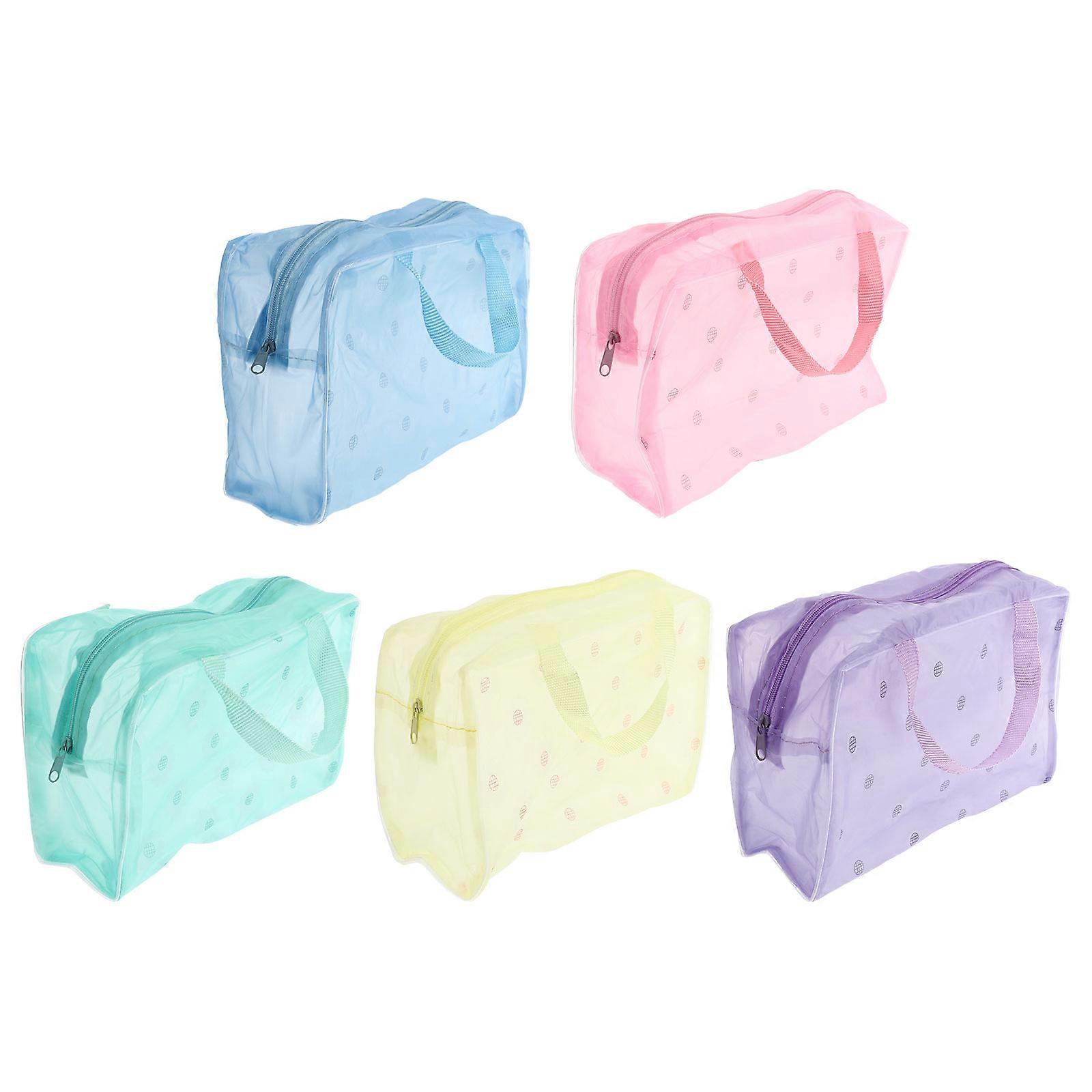 Cosmetics Storage Bag Waterproof Makeup Bags Purple Rectangular Shape Overnight Stay PVC Material 5Set