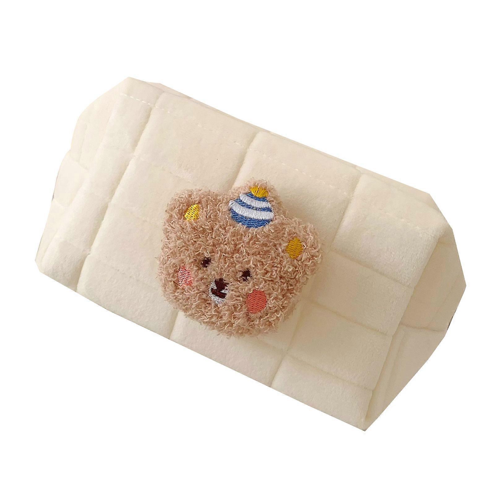 Cosmetic Bag Cute Bear Large Makeup Pouch Travel Toiletry Bag with Zipper Closure Velvet Baby Diaper Bag Organizer light khaki