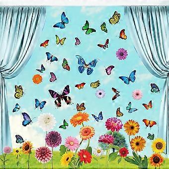 Summer Home Decor Window Art, Herbaceous Perennial Theme For Full Sun Areas, Cut Flower Inspired Accents 9Pcs Bright Pattern Premium Vinyl