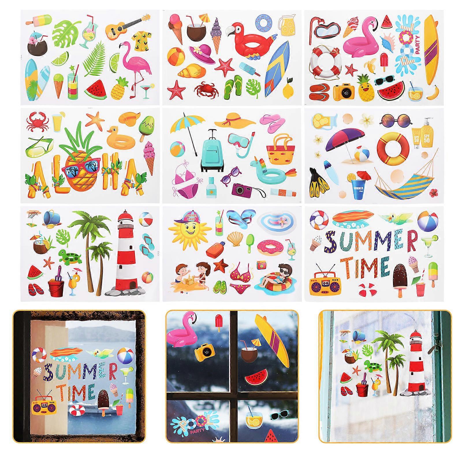 Summer Themed Window Decor Static Cling Sticker Home Decoration PVC Material 30X20CM 9 Sheets