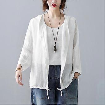 Summer Thin Retro Cotton Linen Cardigan Shirt Women's Loose Artistic Air Conditioning Shirts Sunscreen Blouse