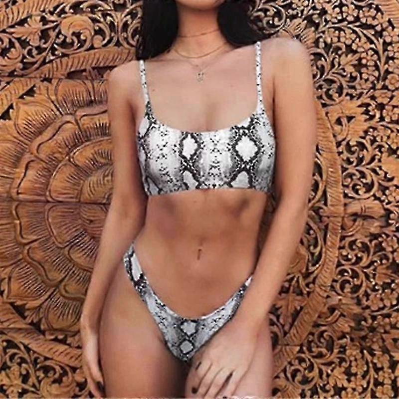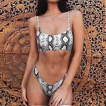 Summer One-piece Swimsuit Women's Oblique Shoulder Bikini Sexy Leopard Print Beachwear Suit Snakeskin Gather Swimsuit