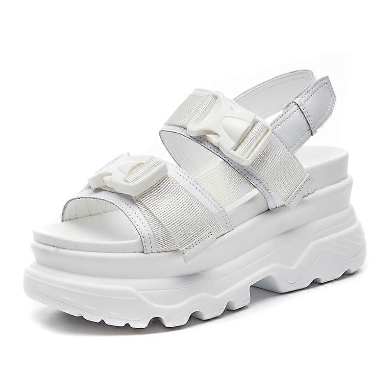 Summer Adult Sandals Buckle Design Black White Platform Sandals Comfortable Adult Thick Sole Beach Shoes 393M