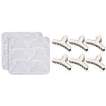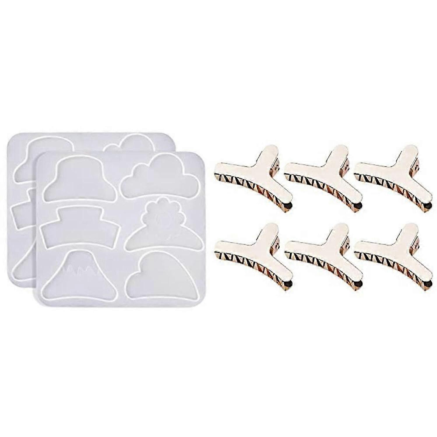 Silicone Resin Mould, 2 Pieces Small Hair Clip Epoxy Mould with 6 Pieces Metal Hair Clips, DIY Jewel