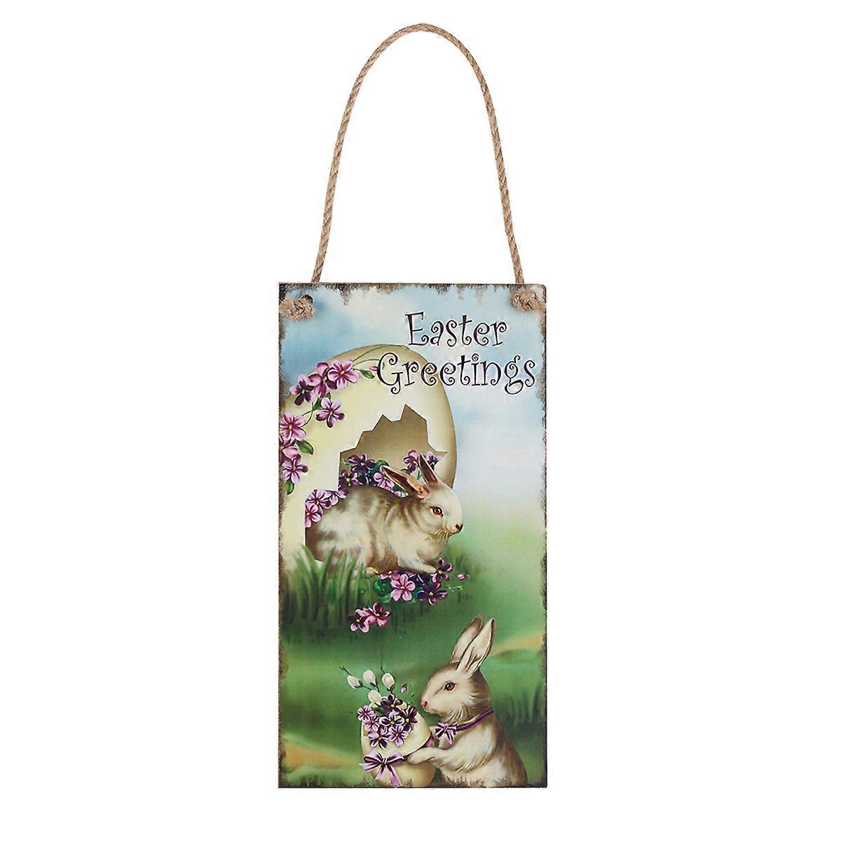 Happy Easter Wooden Hanging Plaque Festival Wall Door Decorative Sign Hanger (EASTER GREETINGS)