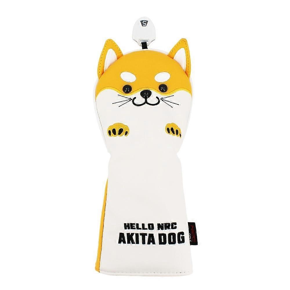 Golf Club Head Covers, Cute Akita for Driver, Fairway, Hybrid, Leather (Yellow)
