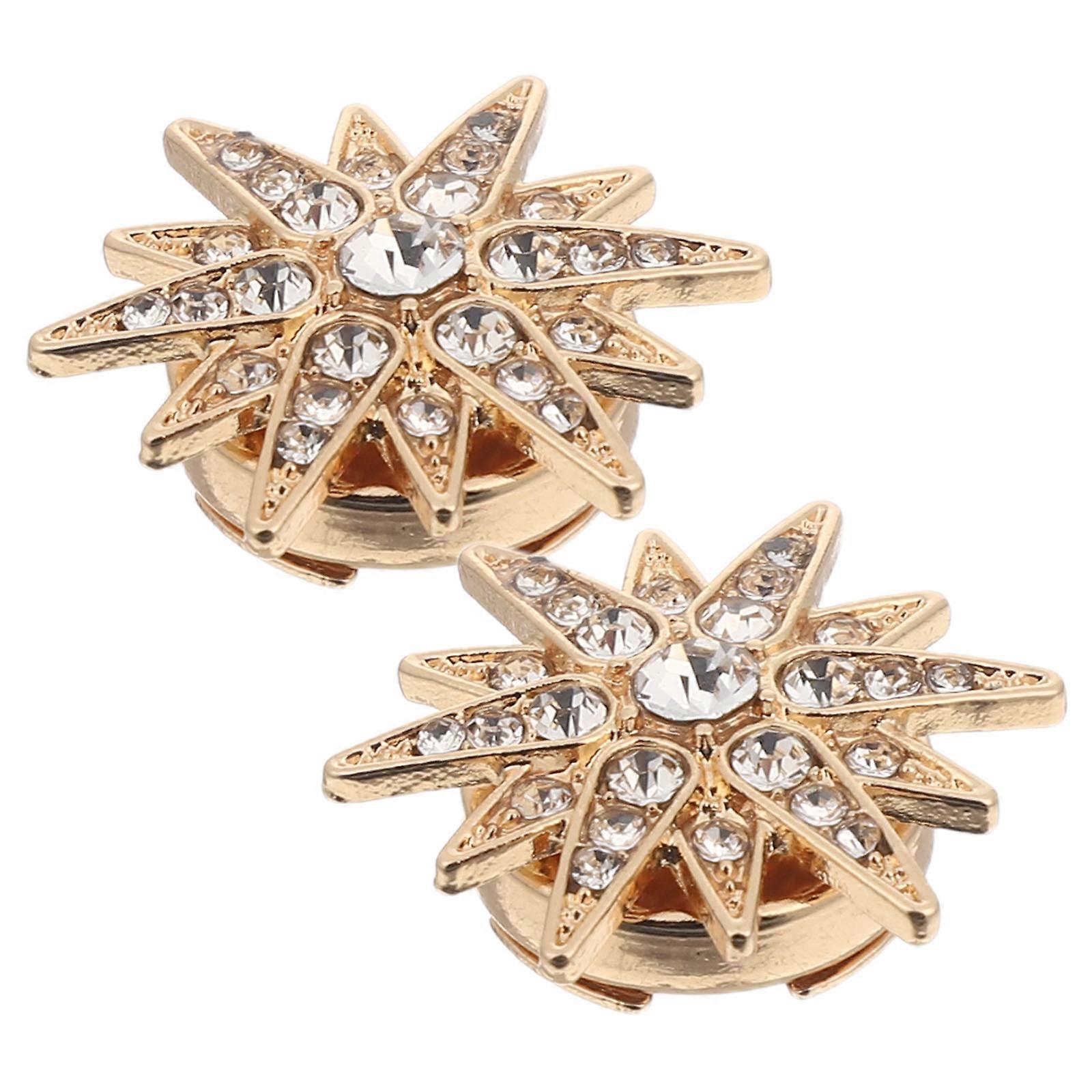 Elevate your style with this glitter button cover, designed as a crystal-studded star badge pin. Ideal for use as a shirt collar brooch or jacket button accessory, it serves as a versatile embellishment for both men’s and women’s clothing. This decorative button cover is perfect for adding sparkle to formal or casual attire. Features -Color:Golden -Material:Metal -Size:2.70X2.50X1.00cm/1.06X0.98X0.39in -Stylish collar decoration: these shirt collar lapel pins are perfect for adding a decorative touch to your outfit, making them a standout accessory for formal shirts or blouses -Crystal button covers: featuring sparkling crystals, these button covers for women's clothing bring elegance and glamour to jackets, shirts, and dresses, ideal for special occasions -Easy diy crafting: use these button craft covers to personalize your clothing effortlessly, whether you're embellishing a blazer or creating unique designs for your wardrobe -Shiny and eyecatching: the glitter button covers are designed to , adding a dazzling effect to your outfit, perfect for parties, weddings, or everyday wear -Unisex design: suitable for both men and women, these decorative button covers offer versatile styling options, from collar clips for men to rhinestone blouse jacket accessories Package list: 1 x pair of button covers