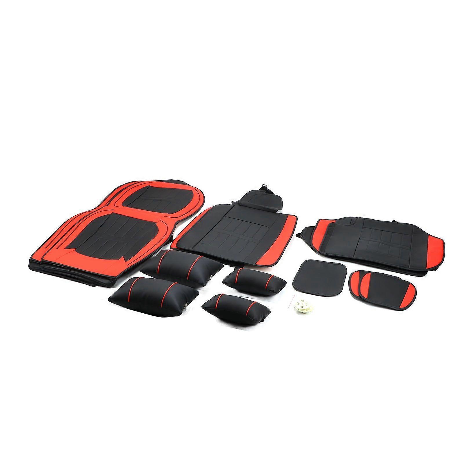 Car Seat Cover Full Wrapping Leather Enhanced Comfort Breathable Car Seat Protector Cover for Most Vehicle Red Deluxe Style