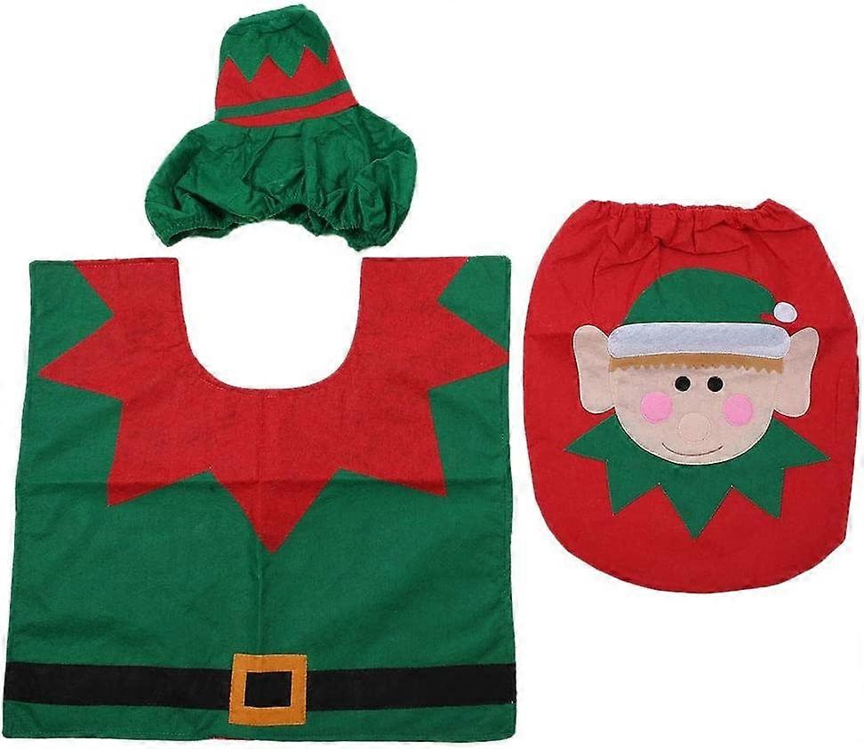 Toilet Lid Cover, Heavy Duty Non-Slip 3-Piece Bathroom Mat(Elf 3-Piece Set)