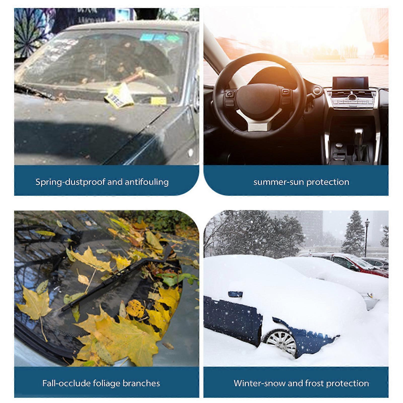 Front windshield cover for car protection against rain sun dust 1、Heavy Duty Material: Made of high-density cotton material, no damage to car paint, sun protection, heat insulation, rain and snow protection, wind and dust protection, scratch resistance, and strong tensile strength. 2、Easy to use: Simply place the windscreen cover on the windscreen, Fasten the buckle on tire. Put the rearview mirror in the cover. Suitable for most normal cars and SUV. 3、Available in Four Seasons: Spring: Anti-wind sand, anti-pollen, anti-tree oil, anti-bird droppings, and animal claws damage to the car; Summer: Anti-exposure, anti-fading of paint and dry and brittle car interior leather and decorations; Autumn: Anti-frost, anti-ice dew; winter: rain and snow. 4、Enlarge and Thicken: Car windscreen cover widen and lengthen, cover a wider area, and better cover the wiper. 5、Reflective Warning Strips: Parking at night is more eye-catching, and the left and right rearview mirrors are equipped with reflective warning strips, which are eye-catching during the day and night to prevent other vehicles from scratching at night.