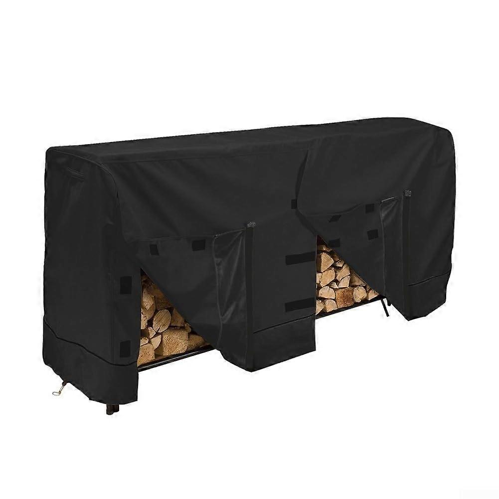 Firewood Rack Cover 8Ft Heavy Duty Waterproof 600D Oxford Outdoor Wood Storage Black Weather-Resistant Cover