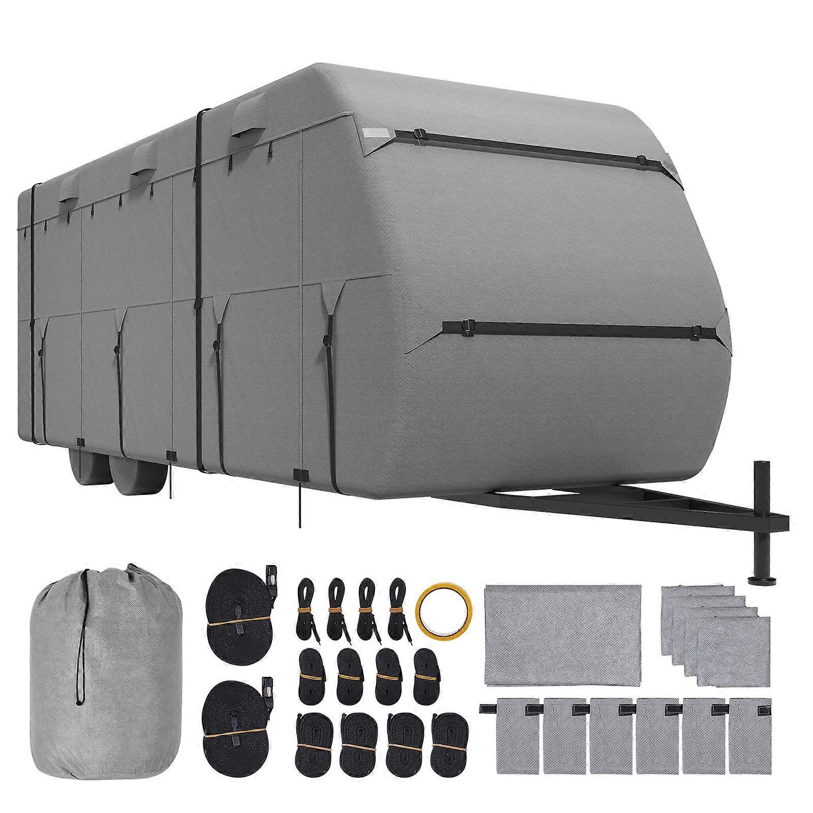 Travel Trailer Cover, 18-20 ft RV Cover, 4-Layer Non-Woven Fabric, Waterproof, Windproof and Rip-Stop, Repair Patches, Straps