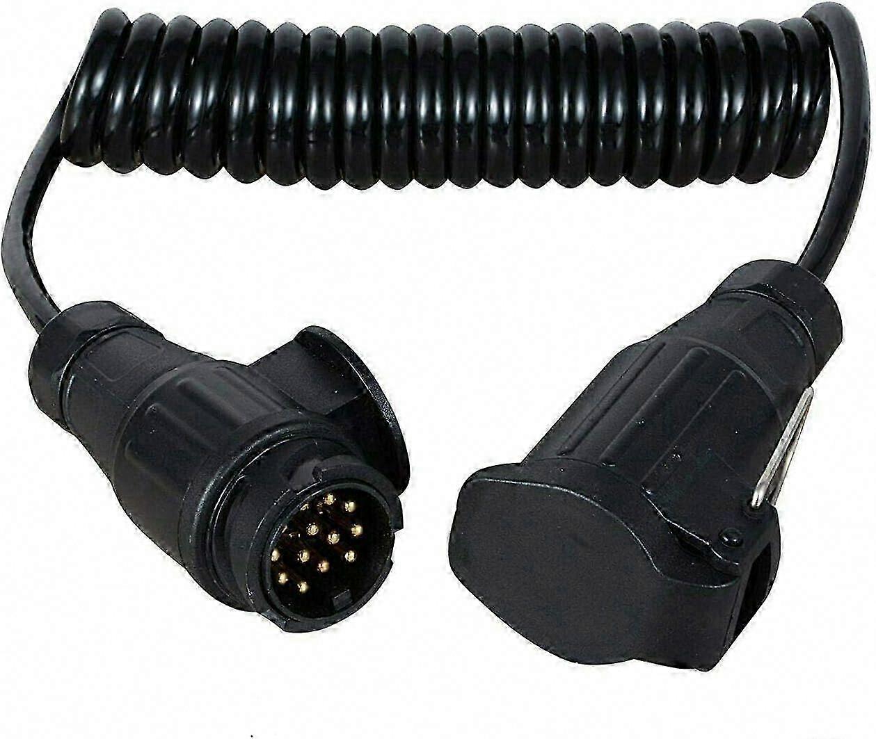 Spiral cable.13 pins.2 m.Product Features:Pin 1 - Left turn signal.Pin 2 - Fog lights.Pin 3 - Loop.Pin 4 - Turn signal to the right.Pin 5 - Right taillight and frame light.Pin 6 - Brake light.Pin 7 - Left rear light and frame light.Pin 8 - Reversing headlight.Pin 9 - Standing Current Supply.Pin 10 - Power supply via ignition switch.Pin 11-10 Contact Circuit.Pin 12 - Contacts reserved for future configurations.Pins 13-9 - Contact circuit.Voltage output: 12 V.Main functions: Connect and transmit electrical signals between the towing vehicle and the towed vehicle.Applications: Commercial vehicles / trailers / motorhomes / cars / ships, etc.Technical features ...
