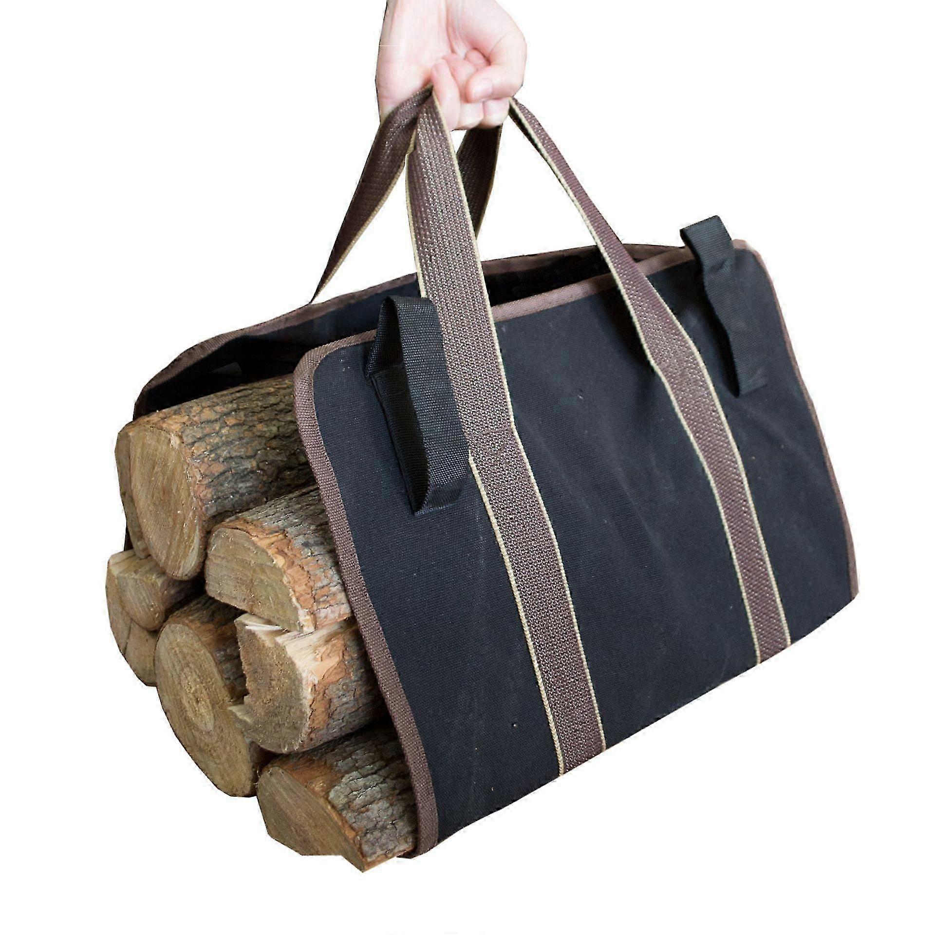 Canvas Log Tote Bag Indoor Firewood Tote Bag Holder Portable Canvas Tote Bag (Black)