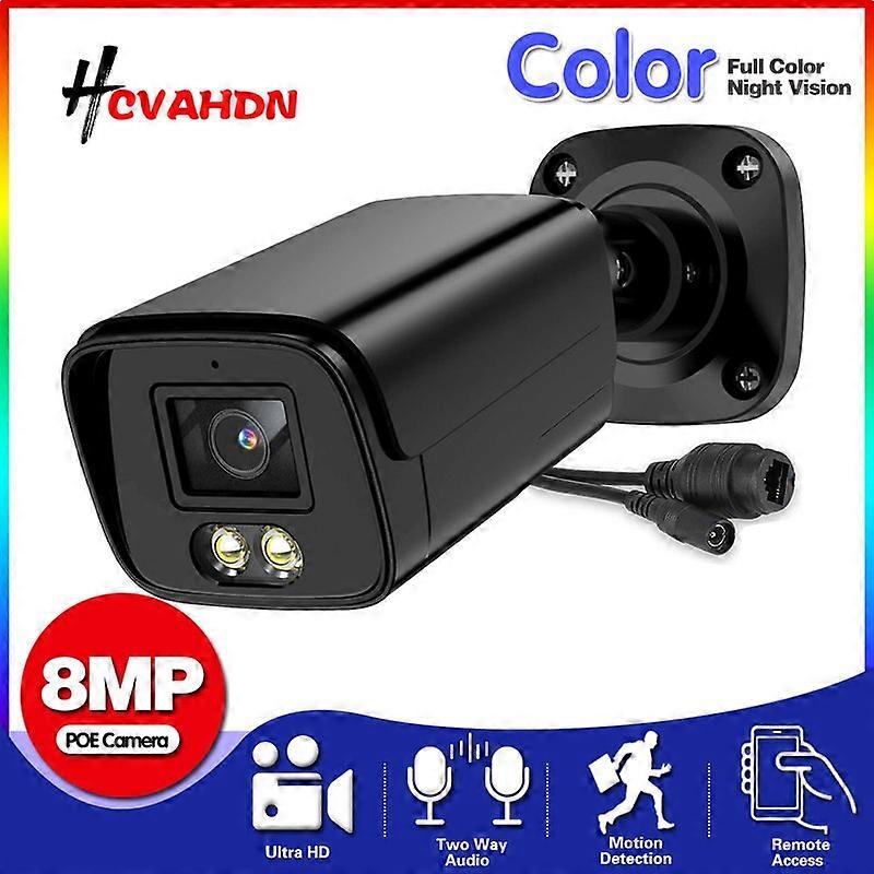 4K CCTV POE IP Security Camera Outdoor Waterproof 8MP Color Night Vision Bullet Camera Video Surveillance System Two Way AudioSecurity Monitors & Reco