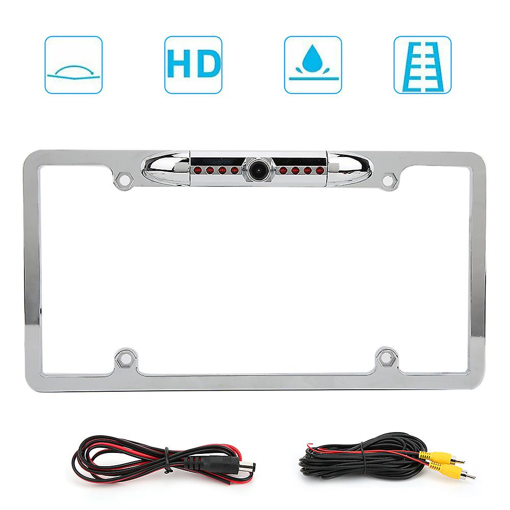 US License Plate Rear View Camera, Wide Angle IR Night Vision, Reverse Assist, Silver Electroplating